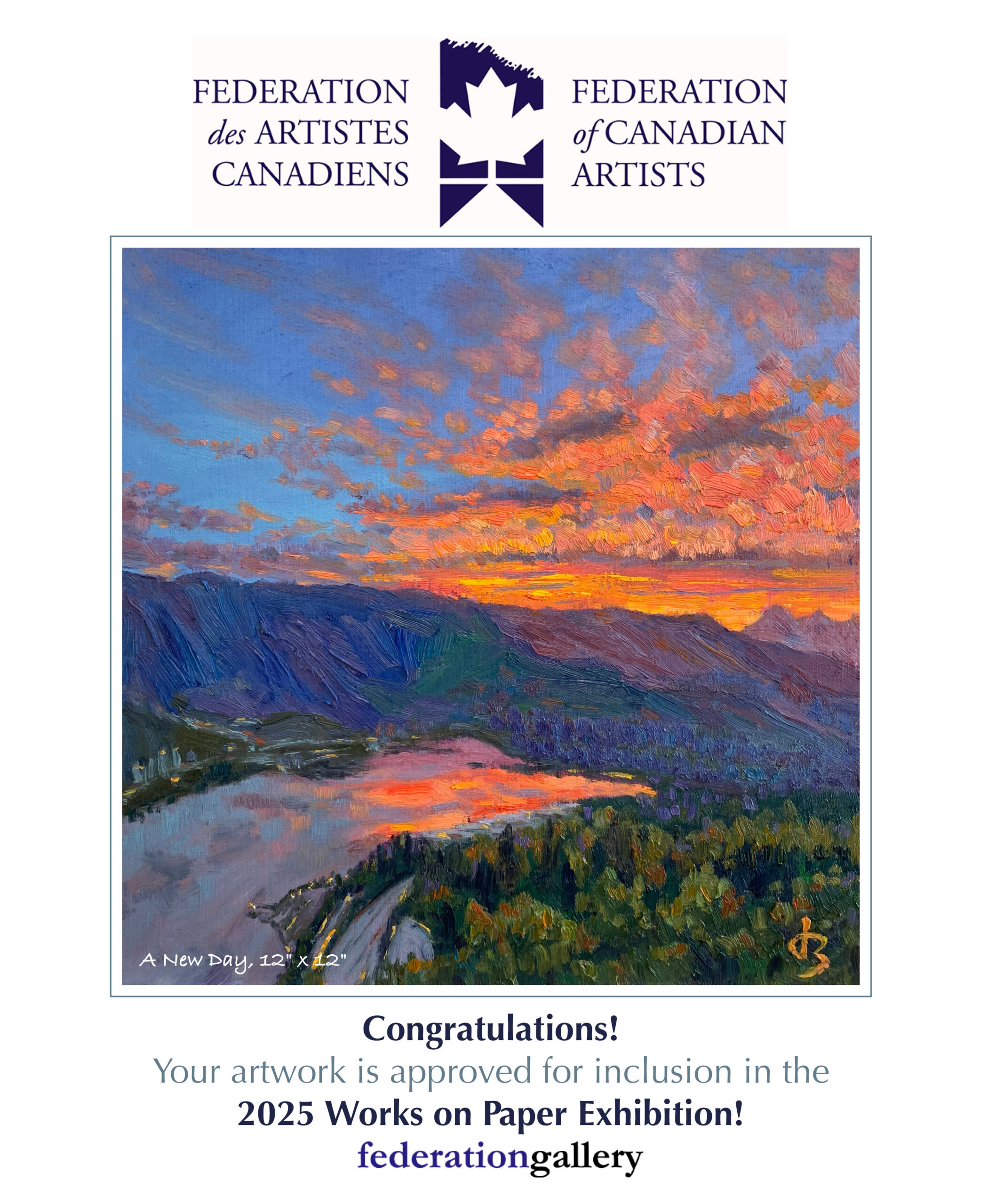 🏛️ Selected for the 2025 Works on Paper Exhibition by the Federation of Canadian Artists (FCA).