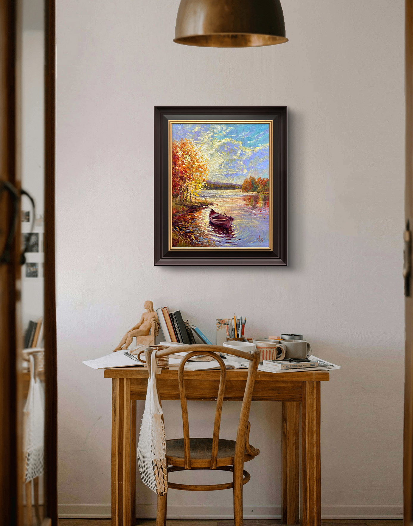 This painting captures the essence of a fleeting autumn moment: peaceful yet alive, tranquil yet filled with quiet energy. Through vibrant brushstrokes and luminous contrasts, it invites the viewer to pause, to feel the calm rhythm of nature, and to breathe in the serenity of the season.