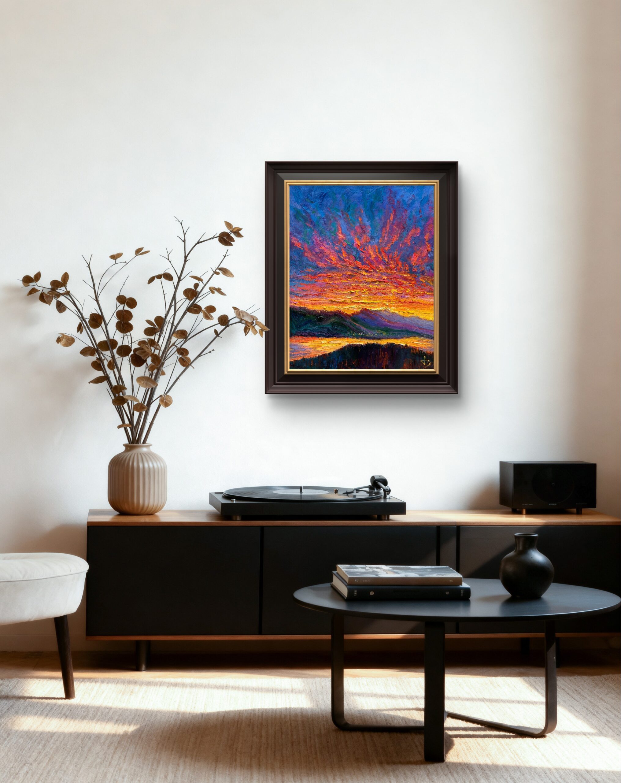 Rather than describing a specific view, the scene unfolds as an emotional state. The sky feels alive, almost volatile, as if light is building from within. Colour and texture merge into a heightened, expressive atmosphere—one that suggests anticipation, intensity, and the quiet force of a new day about to break.