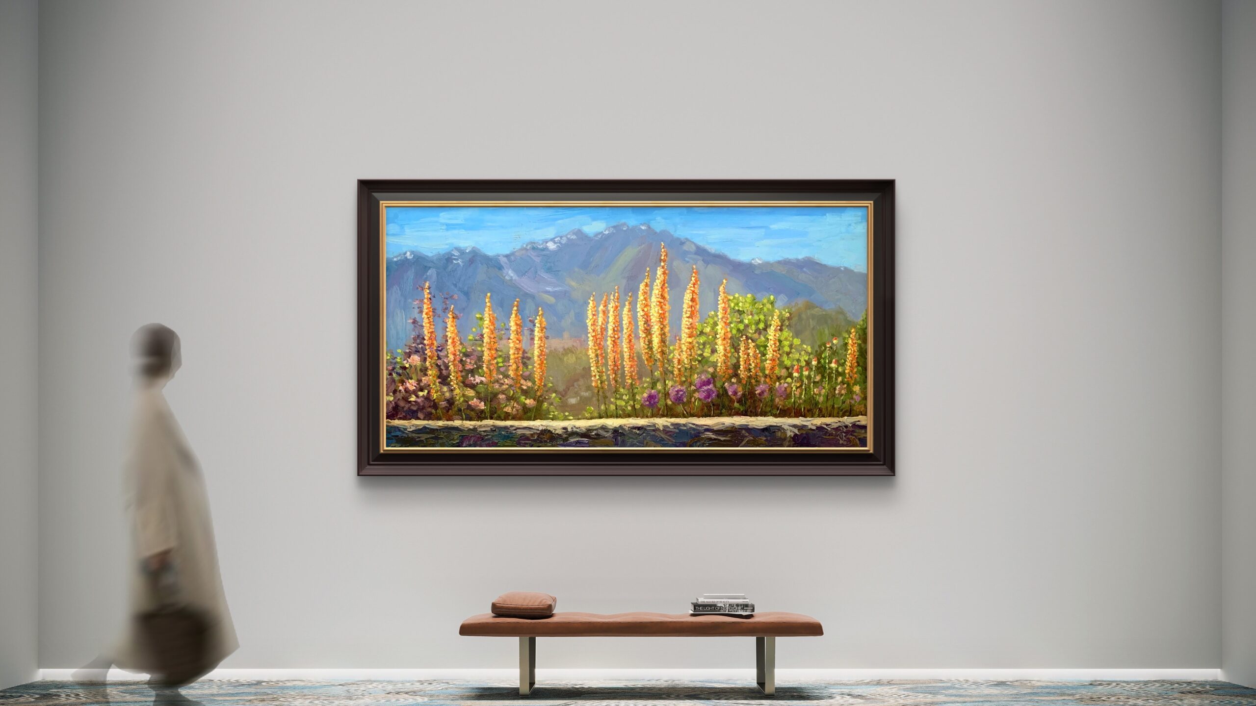 Blooming was painted en plein air at Vancouver’s Queen Elizabeth Park, a place where colors and light dance together in summer air.