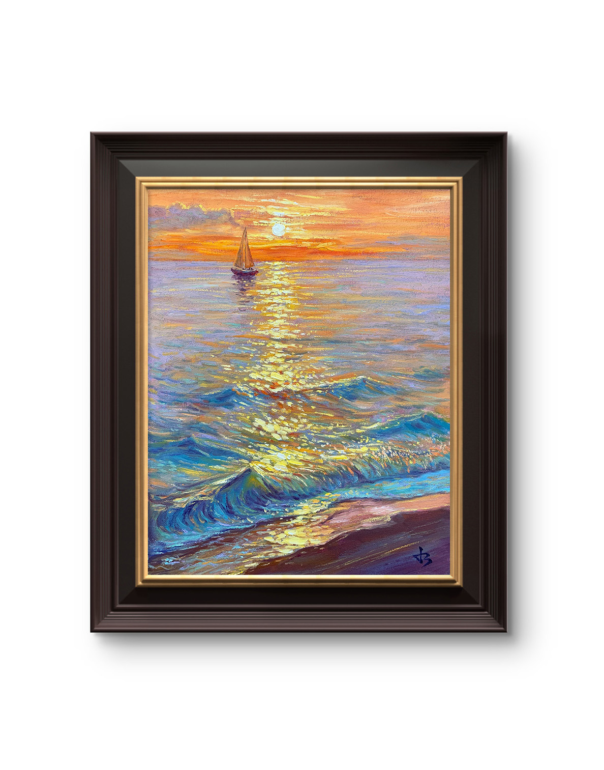 “Chasing the Light” is more than a seascape — it’s a reminder to follow the beauty that calls you, even when it fades. Its glowing palette brings serenity and hope into any space, radiating calm and inspiration every time you look at it.