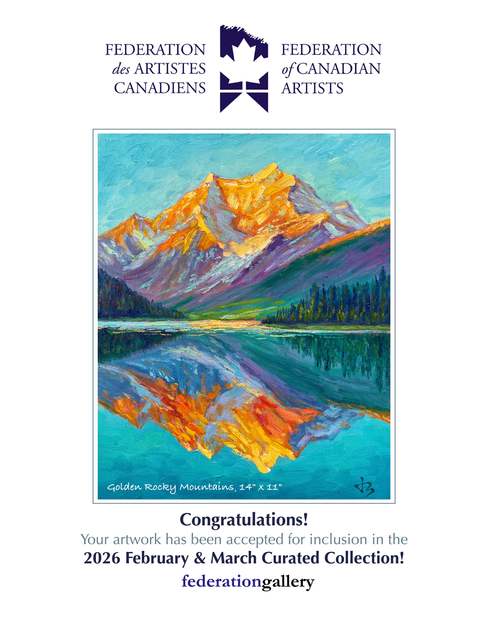 🏛️Selected for the 2026 February & March Curated Collection by the Federation of Canadian Artists (FCA).