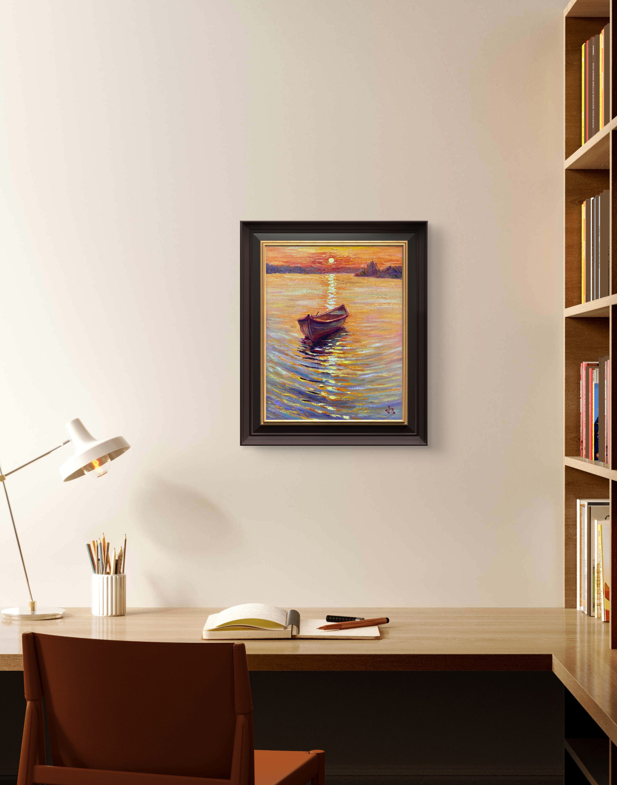 Homeward Boat is more than a landscape — it’s a reflection of life’s tender pauses, a reminder that peace often waits at the end of the day. Perfect for any living space seeking calm and soul, this painting fills your home with light, harmony, and quiet joy.