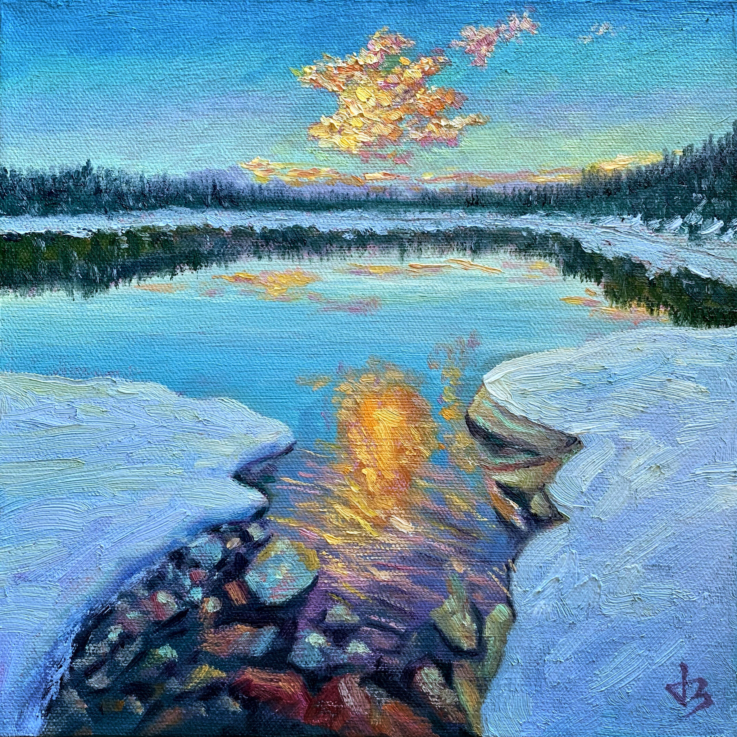 Cold snow meets the fiery glow of reflection. In this quiet balance of ice and warmth, opposites merge—revealing the harmony where silence burns and light breathes through winter.