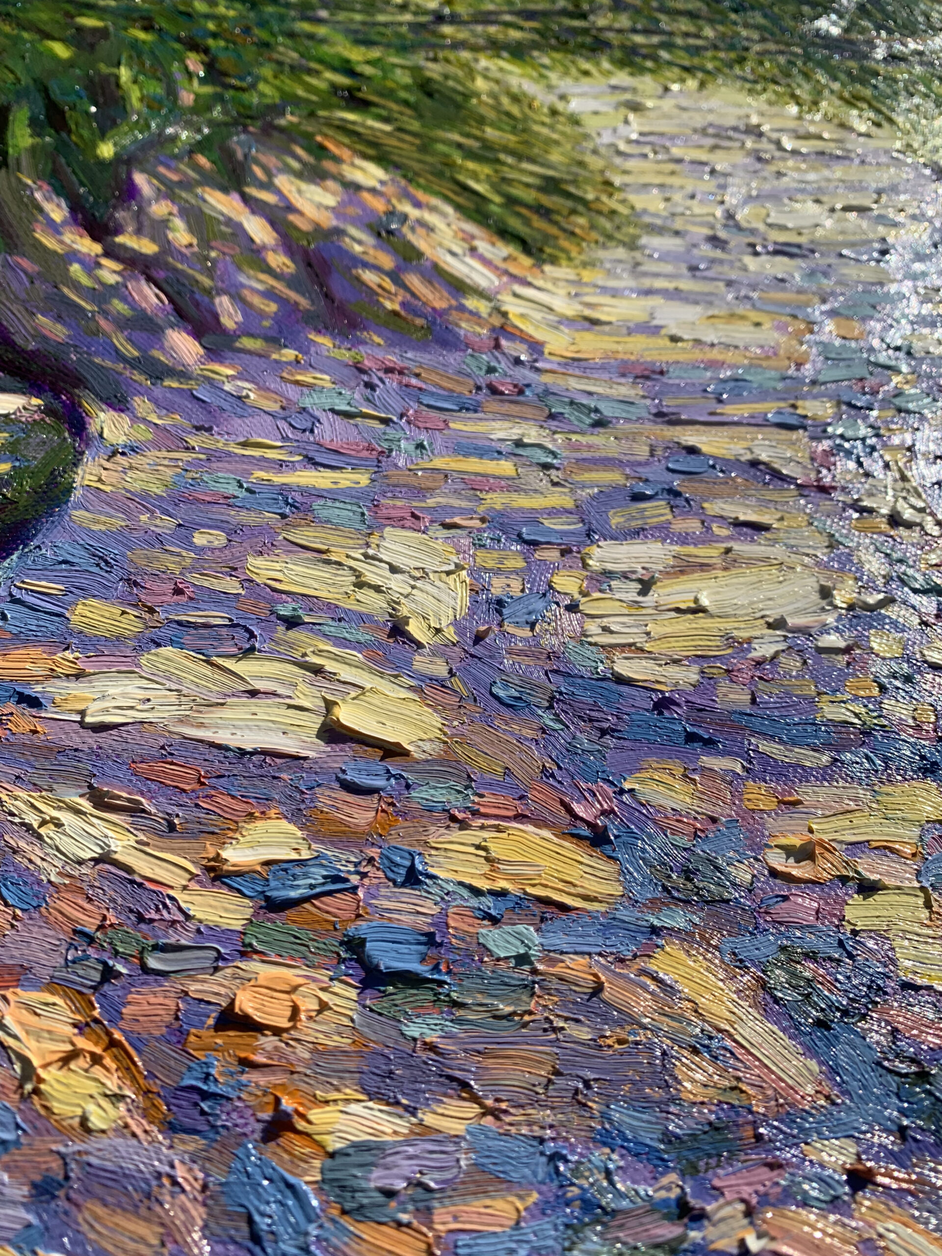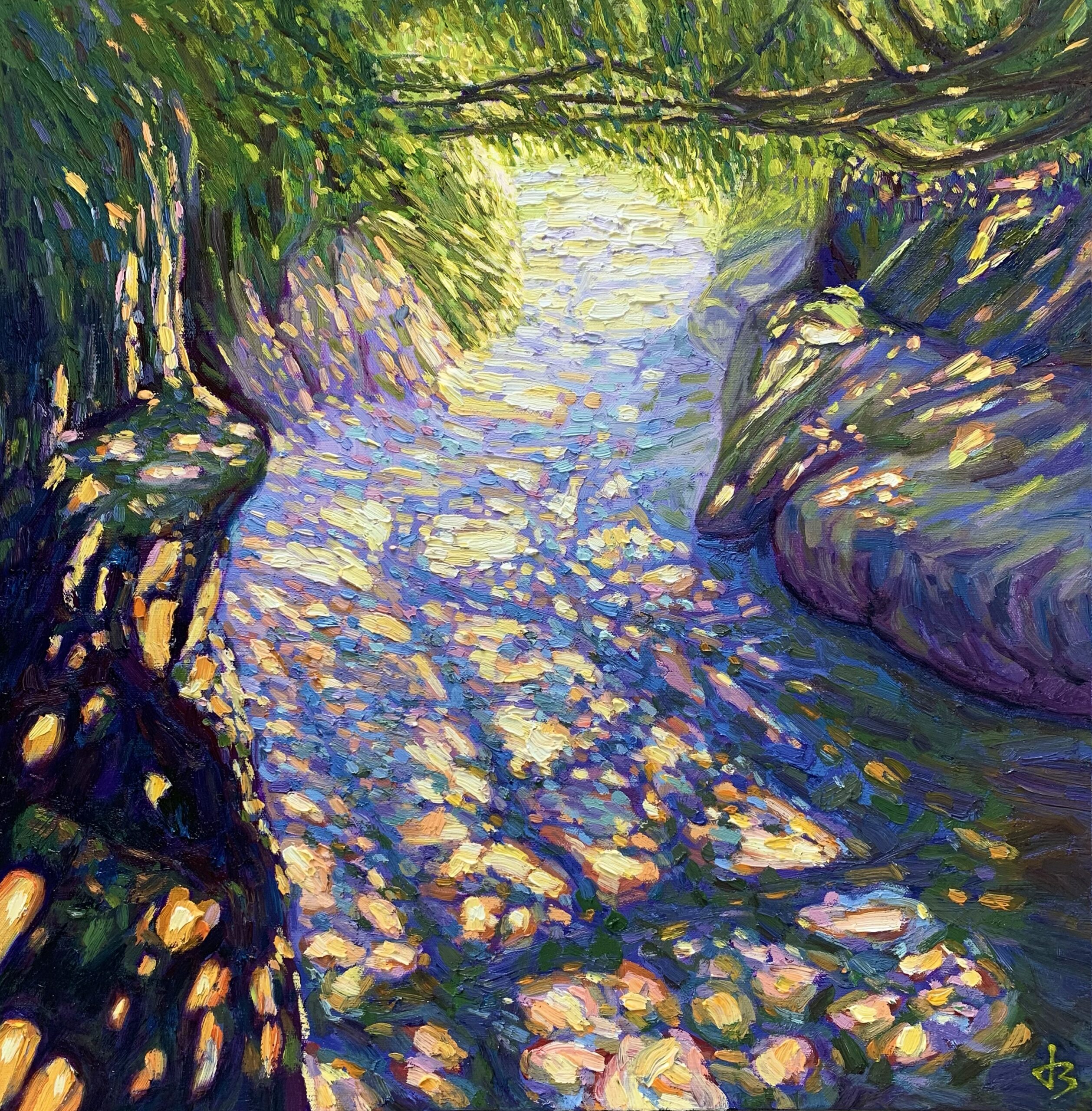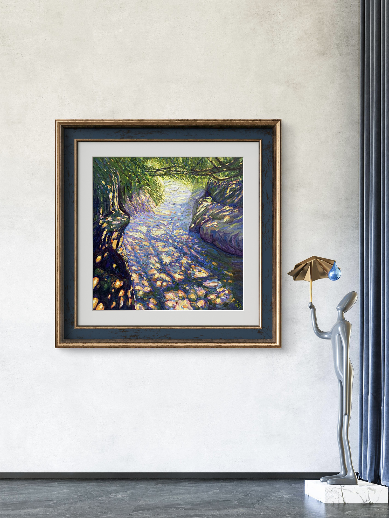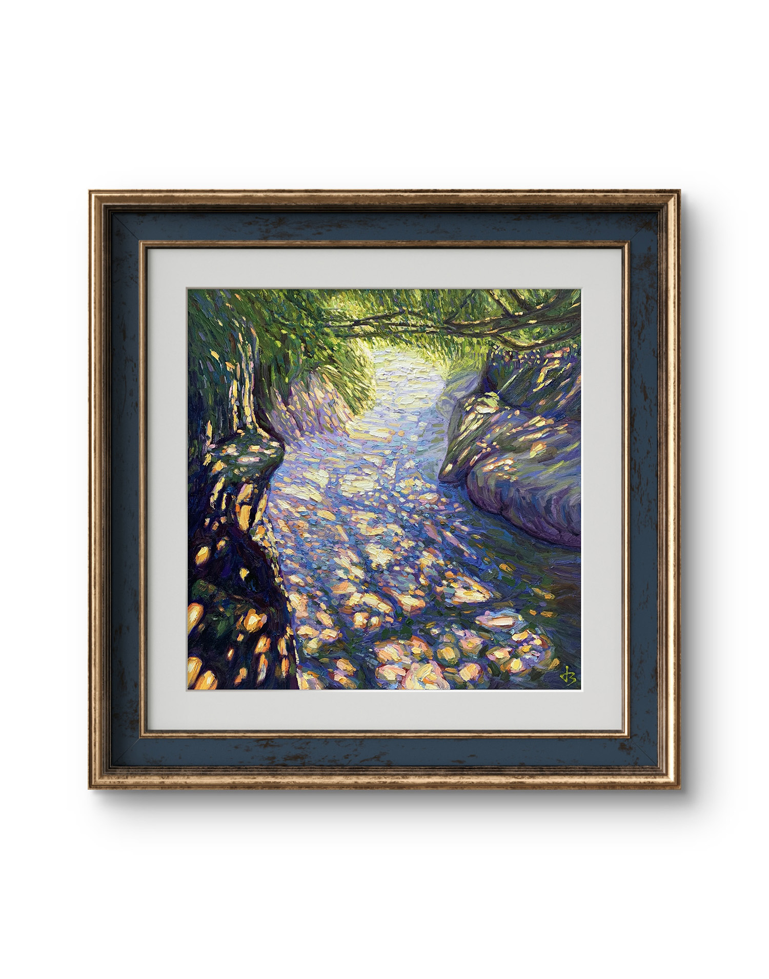 Painted on a quiet summer afternoon, where sunlight filtered through layers of green and fell gently upon a shaded path. The air shimmered with stillness, and time felt almost suspended.