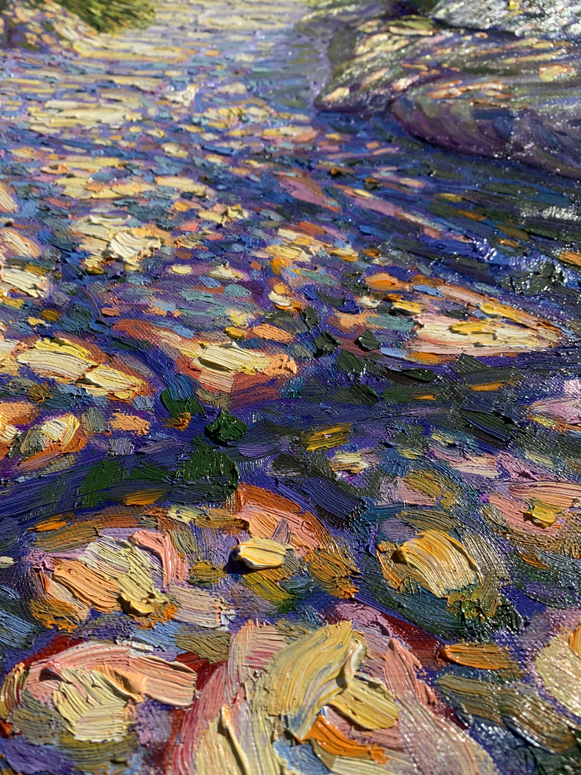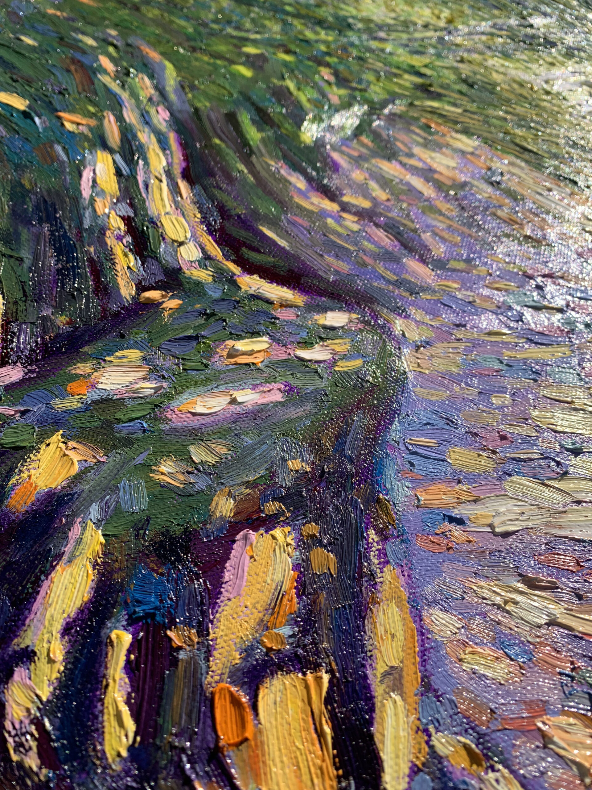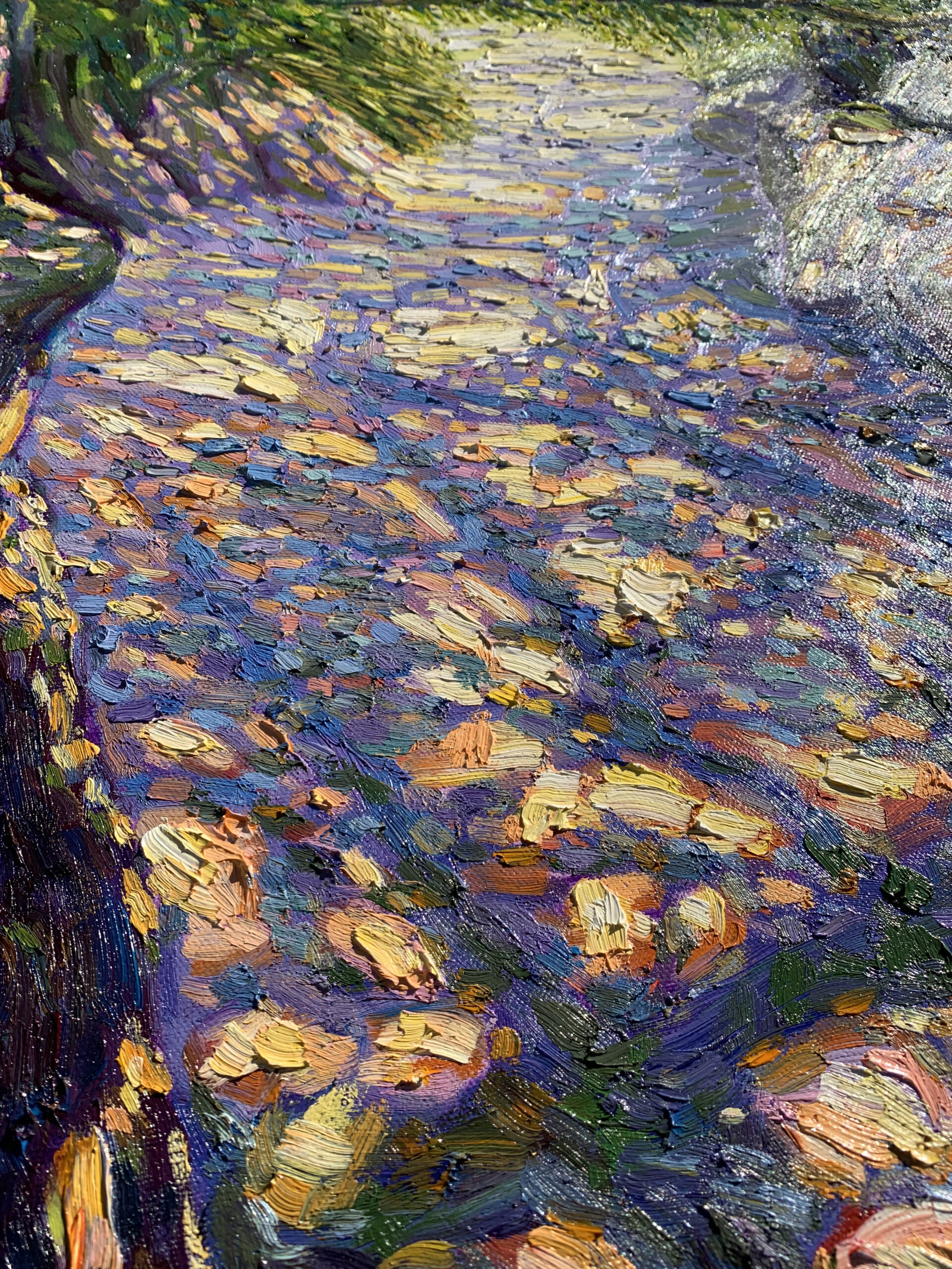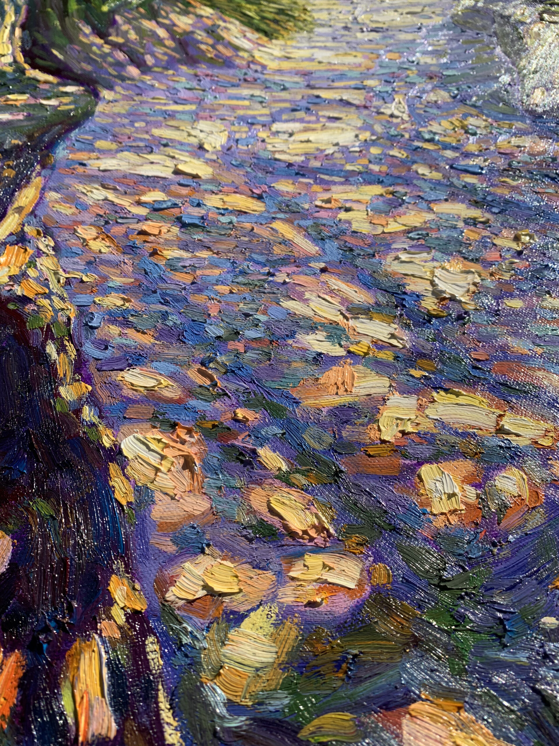 Painted on a quiet summer afternoon, where sunlight filtered through layers of green and fell gently upon a shaded path. The air shimmered with stillness, and time felt almost suspended.