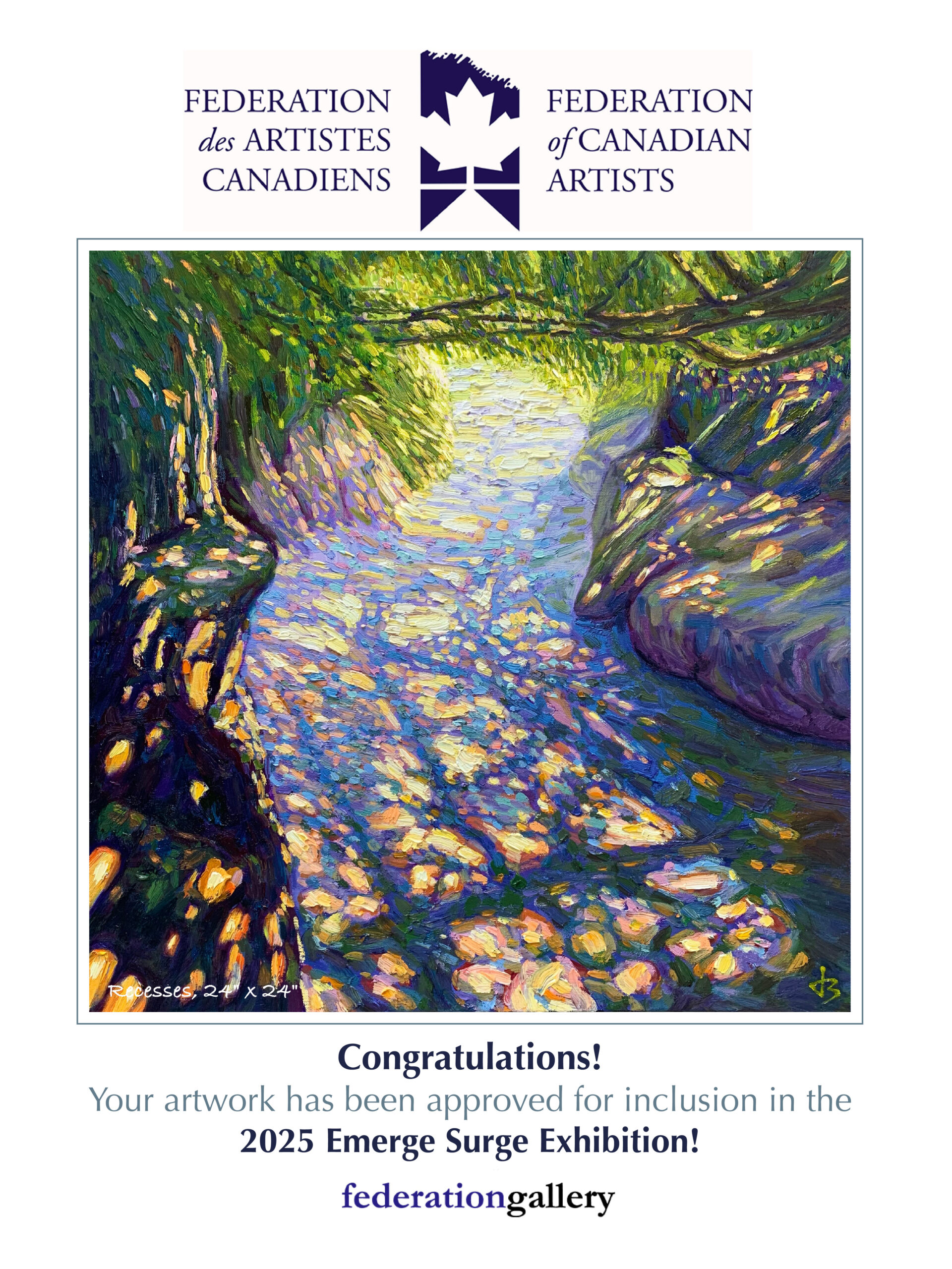 🏛️ Selected for the 2025 Emerge Exhibition by the Federation of Canadian Artists (FCA).