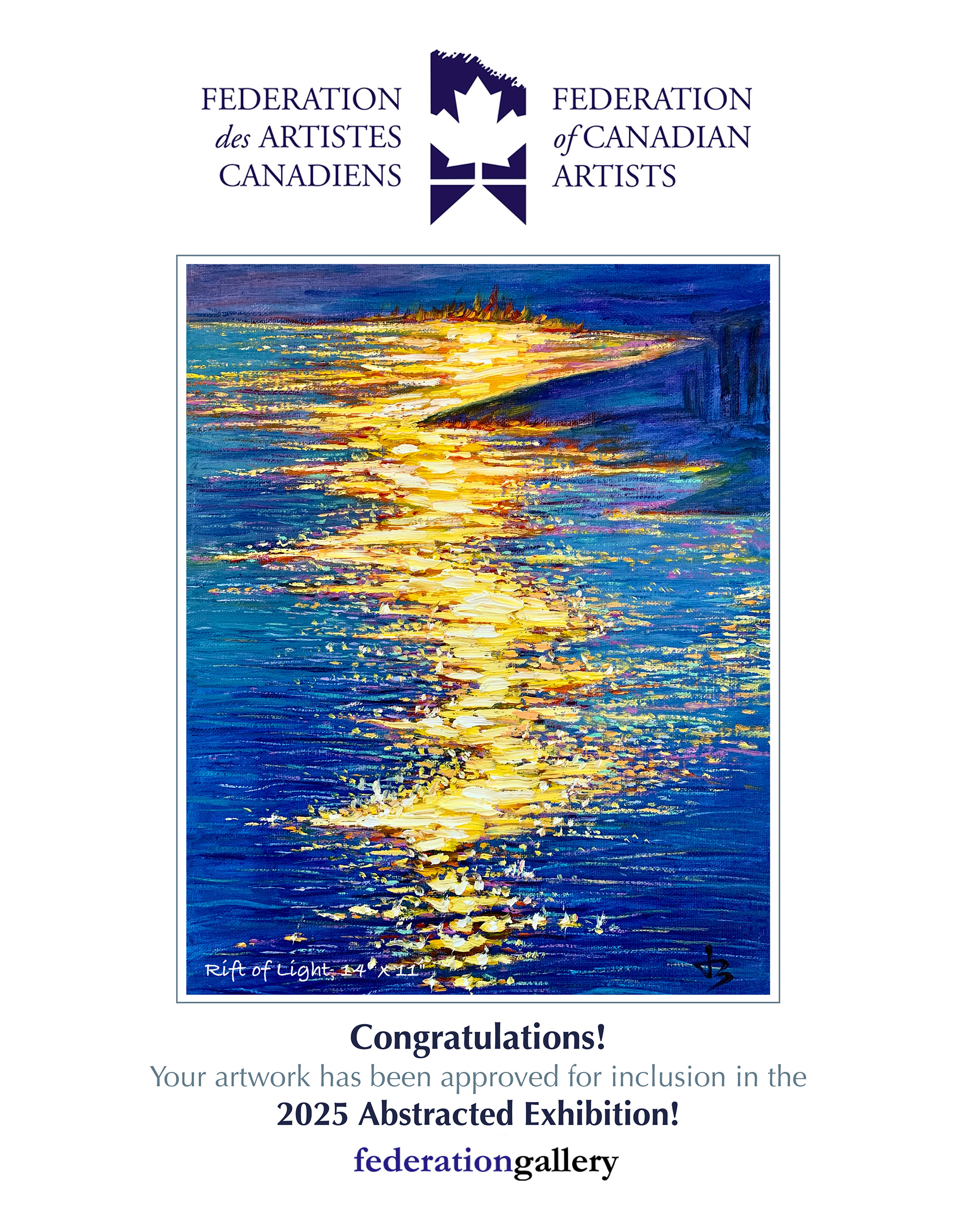 🏛️ Selected for the 2025 Abstracted Exhibition by the Federation of Canadian Artists (FCA).