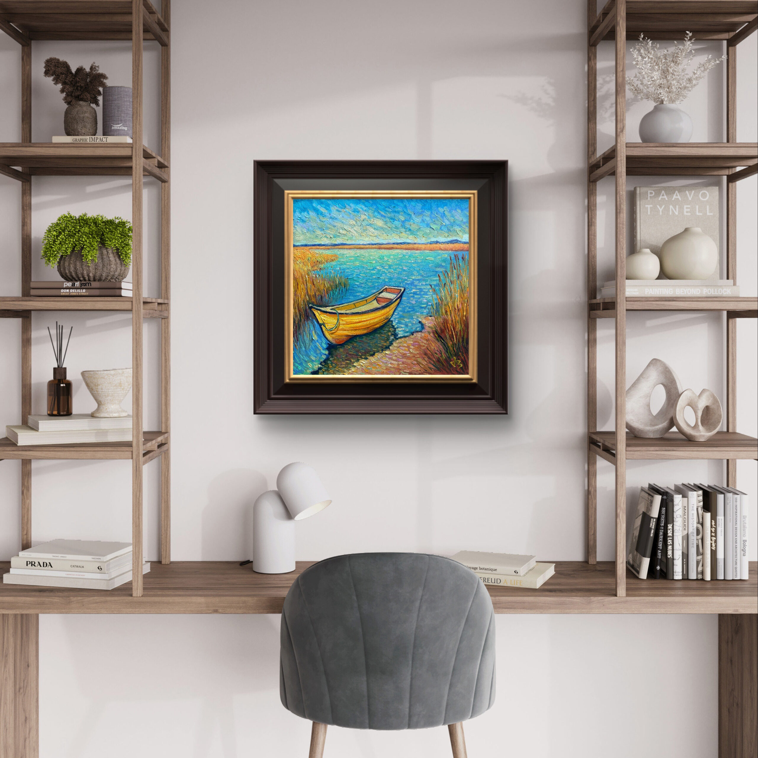 In this silence, time loosens its hold. The boat becomes more than a vessel — it is a resting soul, held by light, floating between reflection and rest.