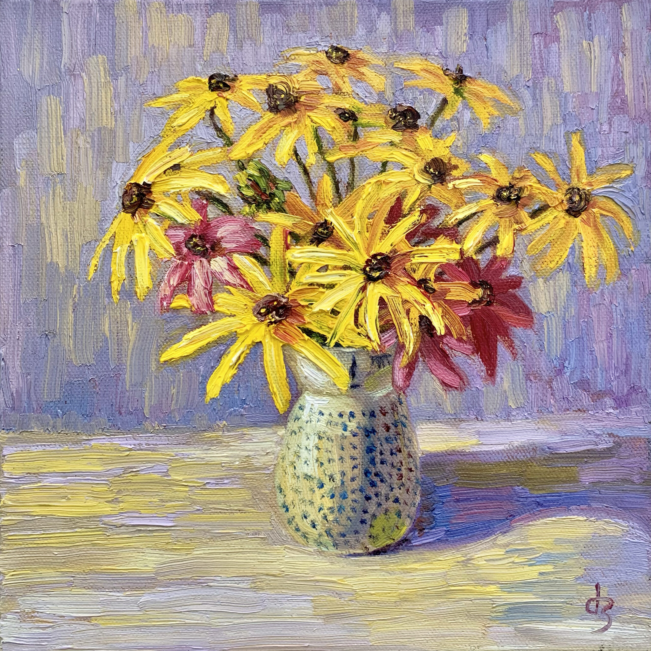 Sweet was painted in the gentle afternoon light that softened everything it touched. The golden petals of black-eyed Susans glowed with quiet warmth, while a few pink blooms added tender contrast — like joy rippling through still air.