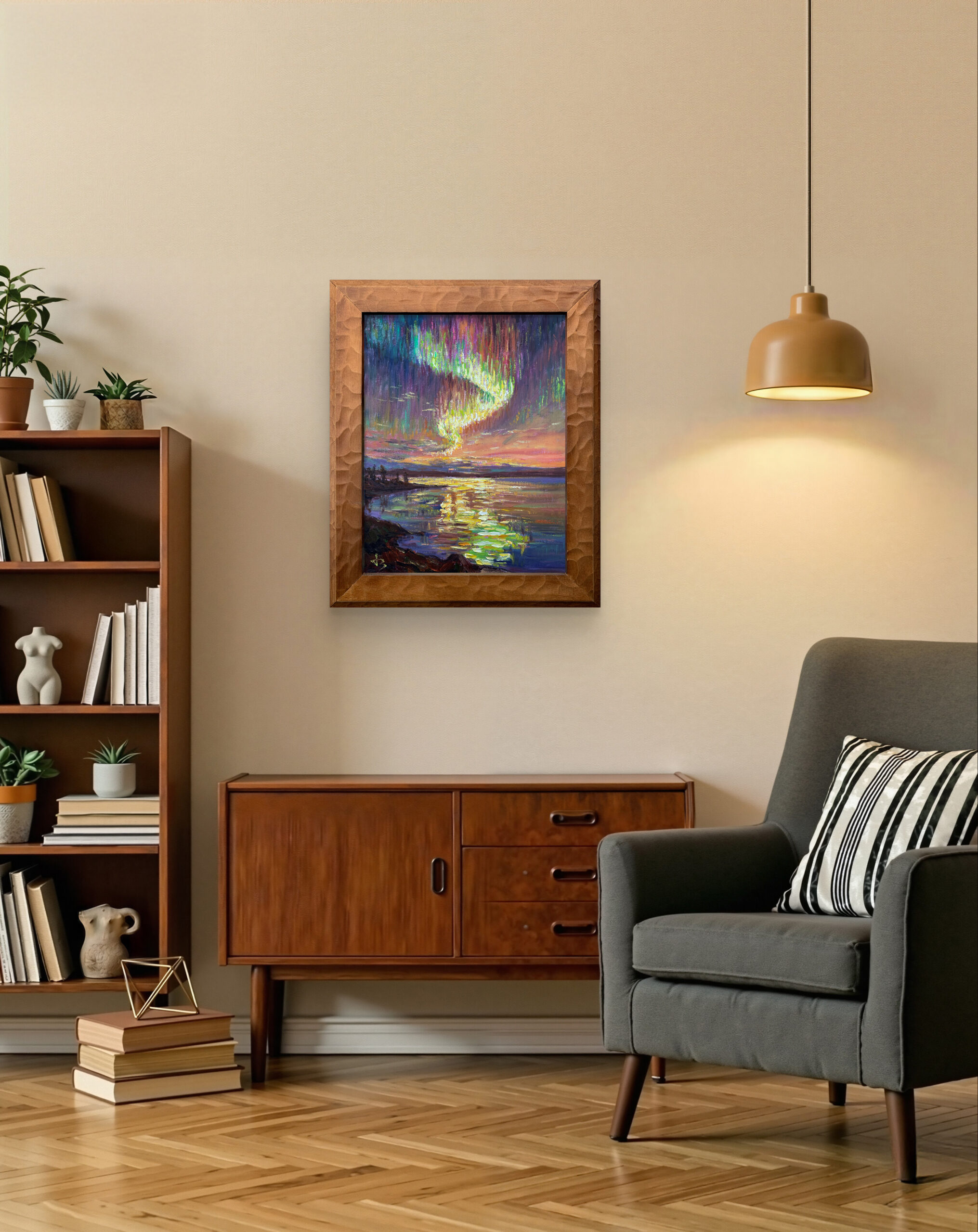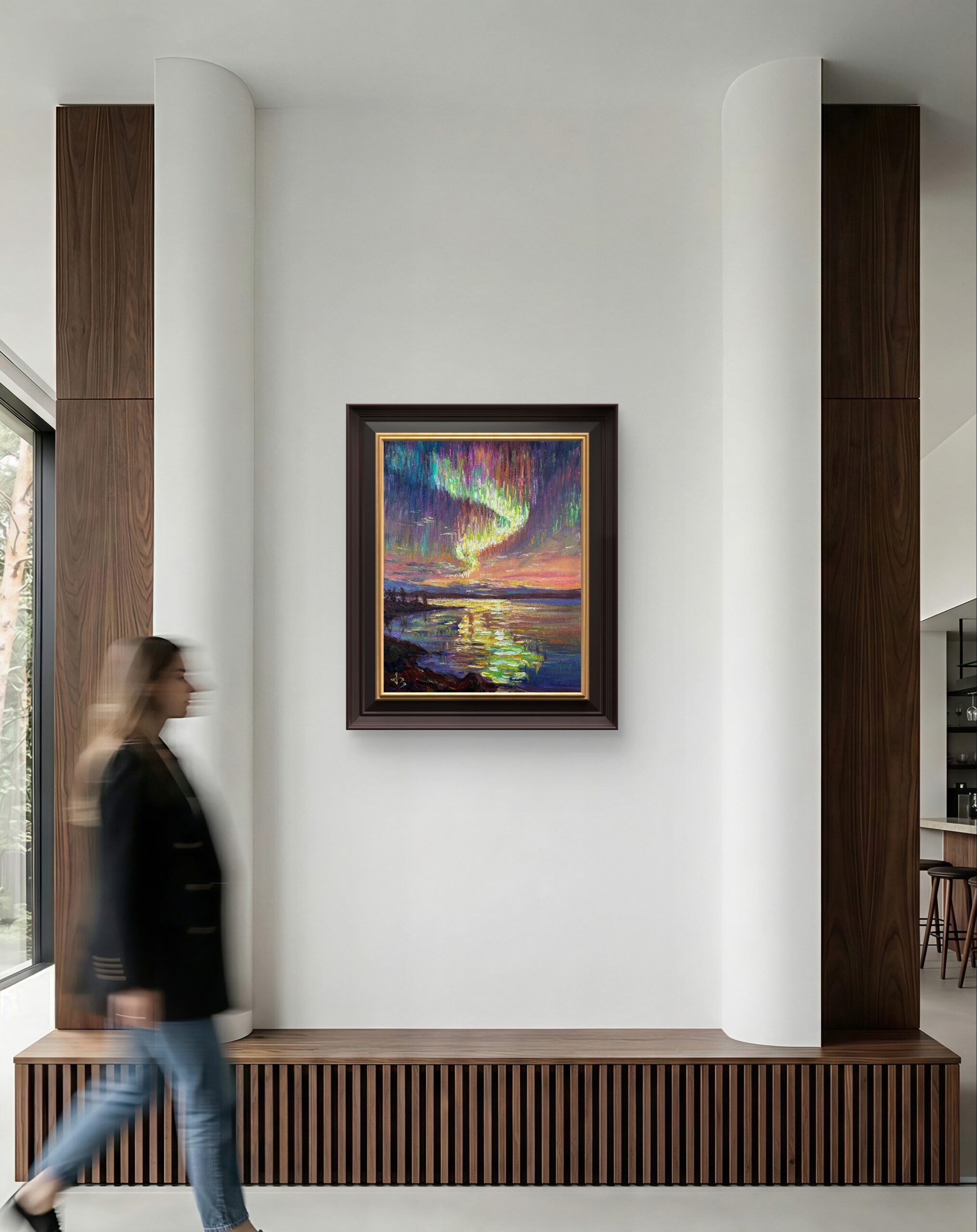 The Descent of Light is not a depiction of a single moment, but of an experience—when nature feels vast, humbling, and profoundly alive. It speaks of illumination not as spectacle, but as arrival: a quiet, inevitable meeting between light, land, and the inner world of the viewer.