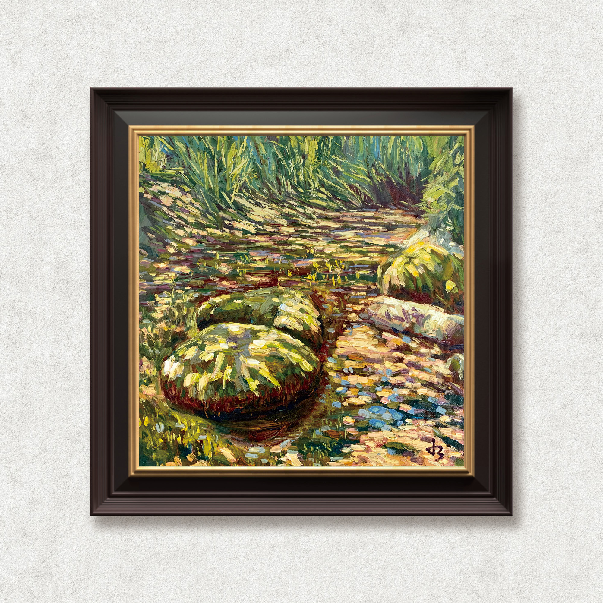 Through textured strokes and layered greens, I wanted to reveal not only nature’s harmony, but its subtle emotional resonance. The stones are alive in their silence, bound by patience and the shared rhythm of existence.