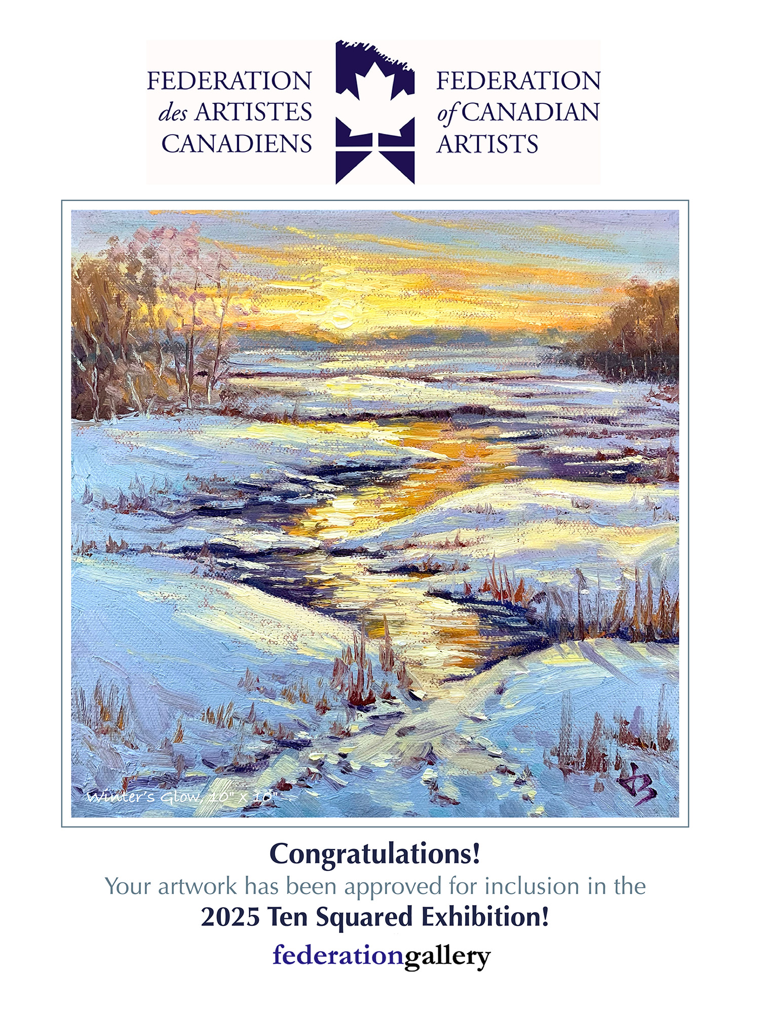 🏛️ Selected for the 2025 Ten Squared Exhibition by the Federation of Canadian Artists (FCA).