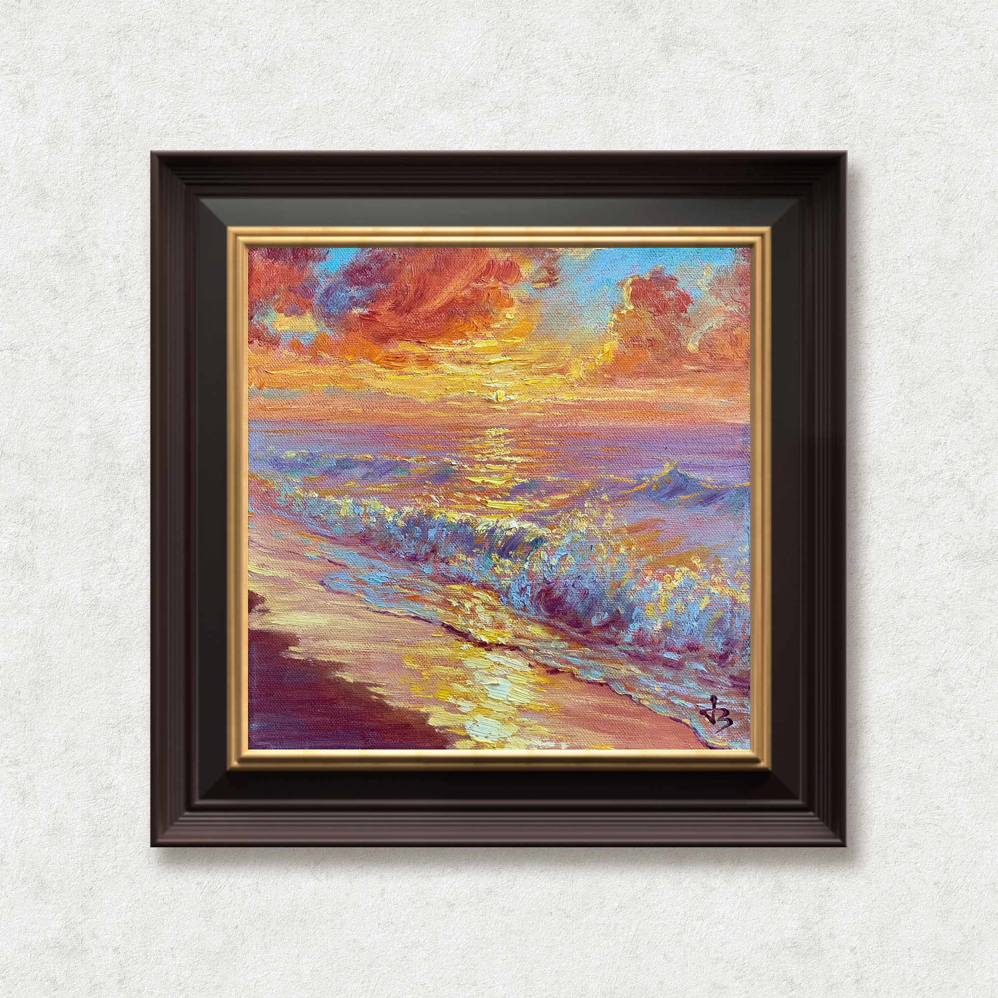 夕阳洒落在海面上,金与橙交织成流动的暖光。浪花被余晖染上细碎的光影,在宁静与律动间闪烁。那一刻,天空、海水与光融为一体,仿佛时间停止,只剩温度在波纹中延展,柔和而永恒。